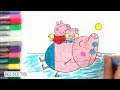 Малюємо як Папа Свин Джордж и Пеппа Свинка Плавають | Відео малюнки та розмальовки для дітей